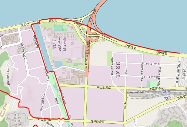 장림동 골목길 끝에서 만나는 큰 도로는 하신중앙로로 부산시 사하구 하단동과 신평동의 중심부를 통과하는 도로라는 의미로 붙인 이름이라고 한다. 많은 사람들이 모여 살고 있는 곳인 만큼 장림동, 신평동, 하단동은 모두 부산 지하철 1호선 역이 있는 곳이기도 하다. 좌회전하여 하신중앙로를 따라 길을 이어간다.