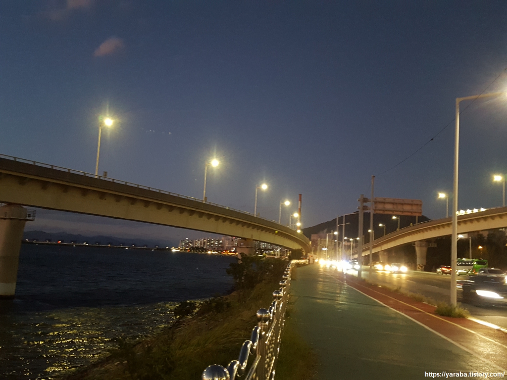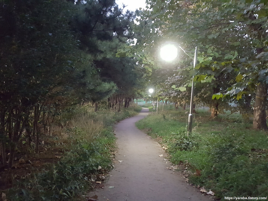원래의 남파랑길은 장림교 아래를 통과해서 6차선 다대로 건너편 강변을 따라 걸어야 한다. 그것이 안전한 방법이기도 하다. 그런데, 잘 모르고 직진했지만 이곳에도 가로등이 있는 나름의 산책로가 있었다. 강변 환경 공원이 있었다. 인근에 부산 서부의 하수 처리를 담당하는 시설이 있는 곳이다.