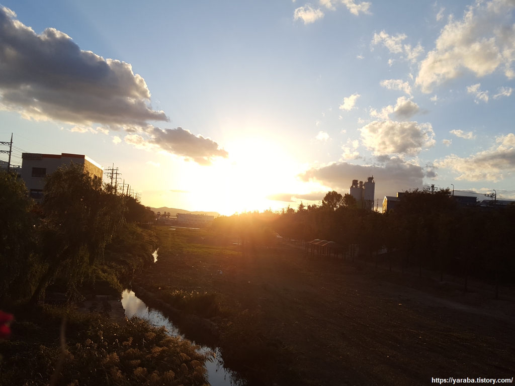 장림 2교 다리를 지나며 서쪽을 바라보니 황홀한 석양이 절정으로 치닫고 있었다. 모든 것을 삼킬 것만 같은 붉은 태양의 해넘이 광경은 사진으로는 그것을 온전히 받아내지 못한다.