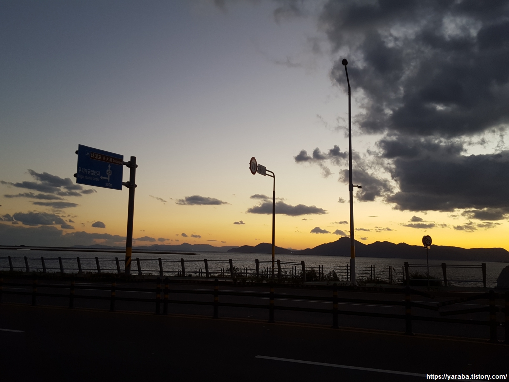 장림포구를 앞에 두고 떨어지는 석양에 발길을 멈춘다. 해가 떨어진 상태로 나머지 길을 걸어야 한다는 조급한 마음보다는 붉게 타는 태양을 대면하는 들뜬 마음이 앞선다.