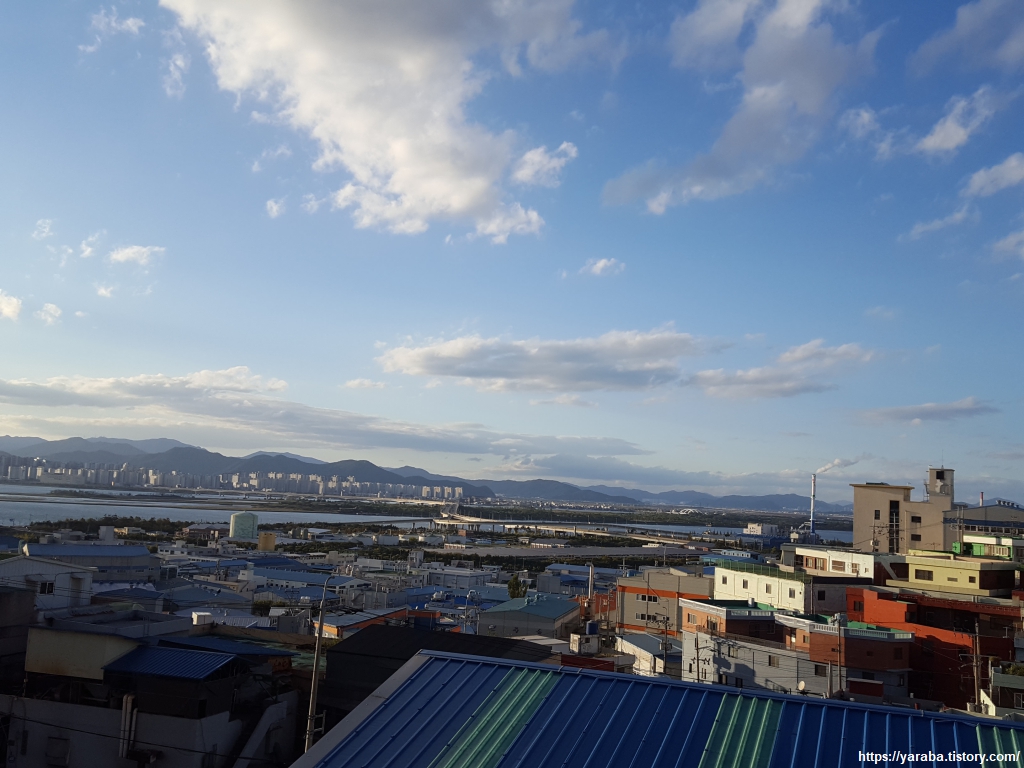 예전에는 김양식으로 분주했을 장림항은 이제는 이런저런 공장들로 가득하다. 장림 포구를 따라 조성된 산책길을 따라 강변으로 나간다.