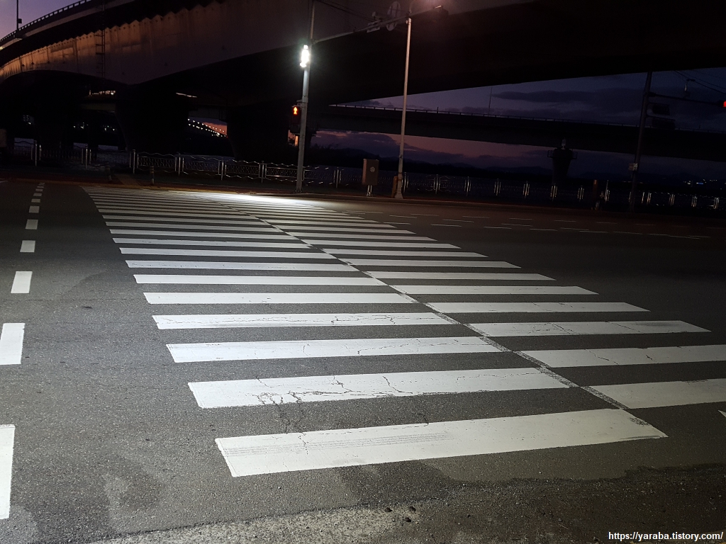 강변 산책로는 도로를 따라 위로도, 강을 따라 도로 아래로도 이어진다. 늦은 시간인데도 자전거가 많았다.