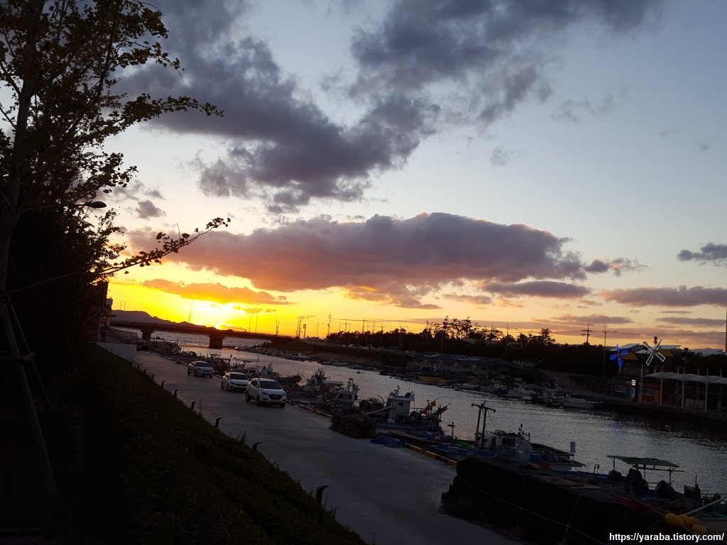 일몰이 아름다운 것은 익히 알고 여러 번 경험한 사실이지만, 낙동강을 지척에 둔 조용한 포구에서 맞이하는 일몰은 와! 하는 탄성으로는 차마 모두 표현하지 못하는 감격이다.