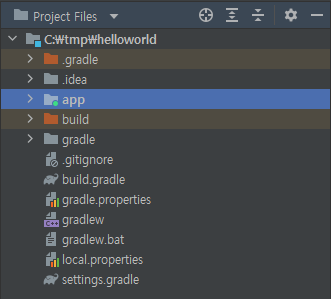 프로젝트를 작성한 다음 파일 탐색기에서 해당 프로젝트를 저장한 폴더를 확인하면 위의 그림처럼 나타나는데 이는 우측의 그림처럼 안드로이드 스튜디오의 [Project] 탭에서 "Project Files"를 선택한 상태와 동일하다.
