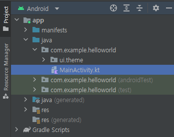 그렇지만 코드를 작성할 때는 위의 그림처럼 코드 작성에 꼭 필요한 내용만 보여주는 "Andriod"를 선택하는 것이 편리하게 작업하는 방법이다.