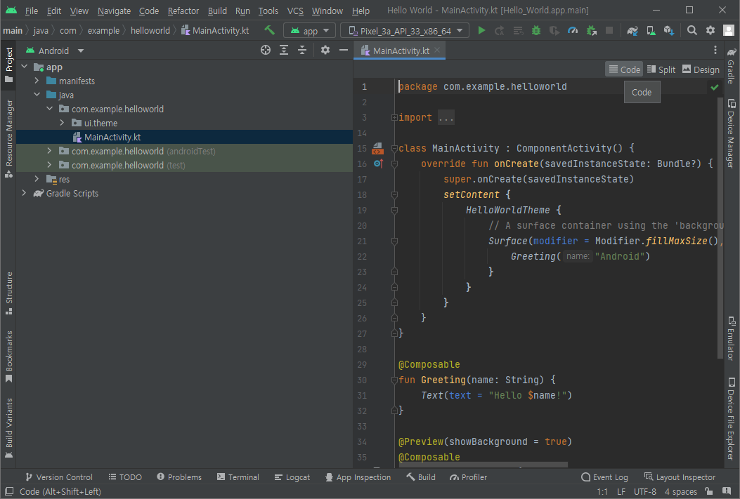 생성된 첫 프로젝트가 열린 화면이다.