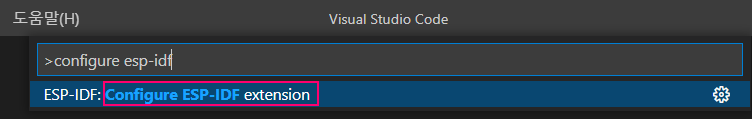 [F1] 단축키나 보기> 명령 팔레트 메뉴를 선택한 다음에 위의 그림처럼 "configure esp-idf"라고 입력하면 [Configure ESP-IDF extension]이 나오는데 이것을 클릭한다.