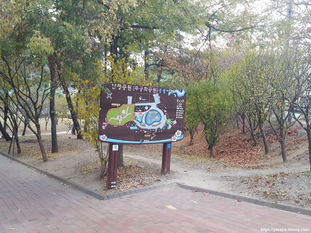 길은 안골 무궁화공원(안청 공원)에서 좌회전하여 도로를 따라 길을 이어간다.