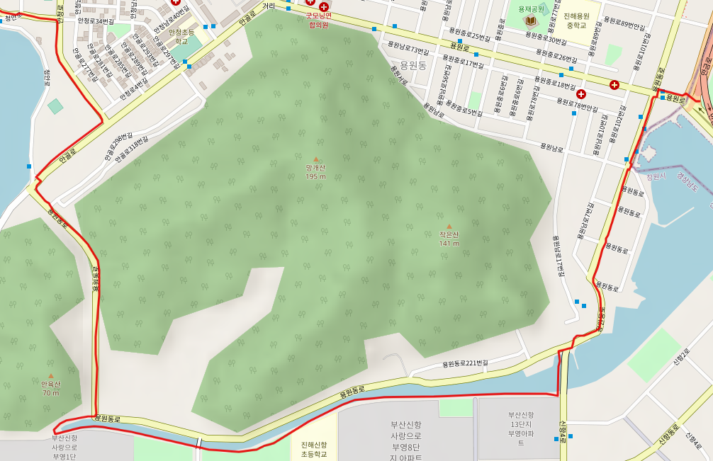 부산 코스를 마무리한 남파랑길은 송정 공원을 떠나며 창원 코스를 시작한다. 남파랑길 6코스는 용원 어시장을 지나 망개산 아래 자락의 수로를 따라서 아파트 단지의 산책로를 따라 걷는다.