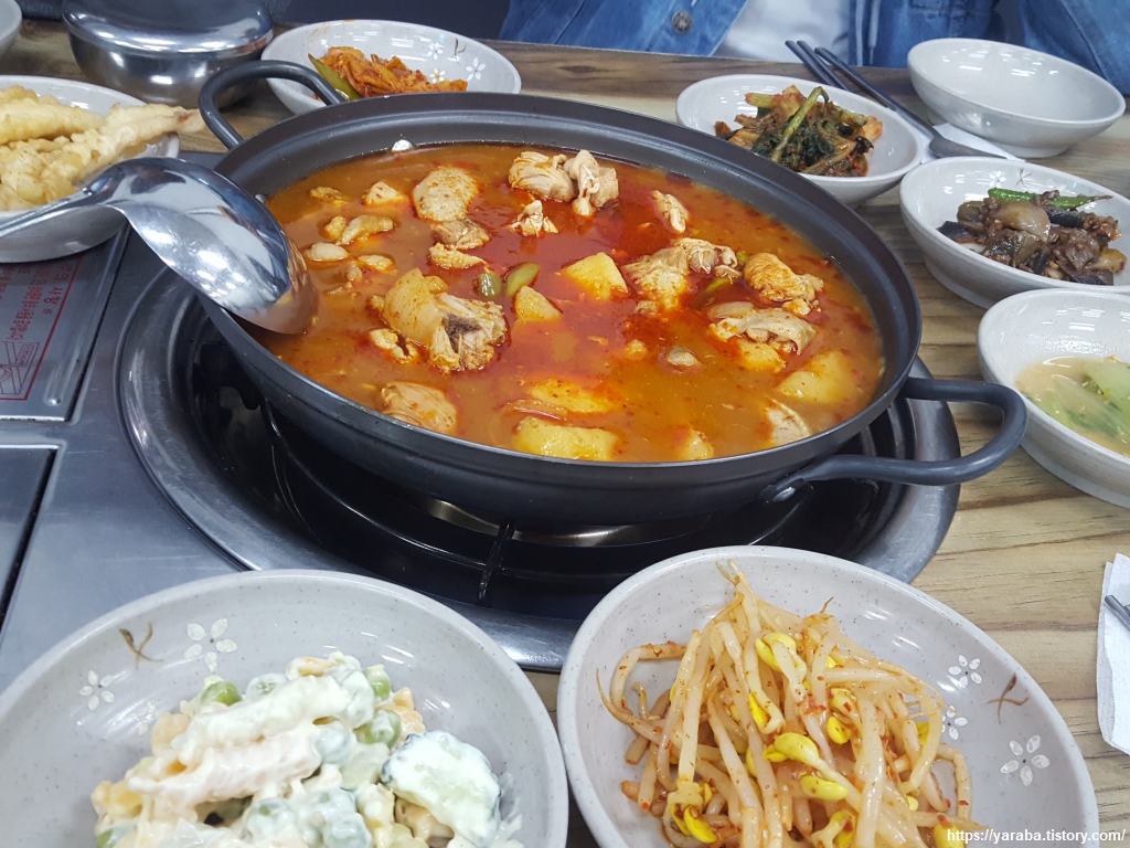 엄마손밥집에서 백반을 시켰는데 오늘의 메뉴는 닭볶음탕이었다. 이런 횡재가 있나! 좋은 백반집을 만나면 가끔씩 이런 횡재를 하기도 한다. 주변 공장에서 일하시는 분들이 회식을 하는지 너무 시끌벅적한 것이 조금은 거슬리기는 했지만 이것 또한 사람 사는 풍경이니 하는 마음을 가지니 문제 될 것이 없었다. 무엇보다 닭볶음탕과 맛있는 반찬들에 정신이 팔려 주위가 시끄럽든 말든 상관할 바가 아니었다. 작업복 차림으로 퇴근하고 오신 분이 혼자서 백반에 소주 한 병 시켜 드시는 모습조차도 자연스러운 것이 다행이다 싶었다. 그분도 소주 한잔에 닭볶음탕을 안주로 드실 테니 위안이 되는 식사 시간이었을 것이다.