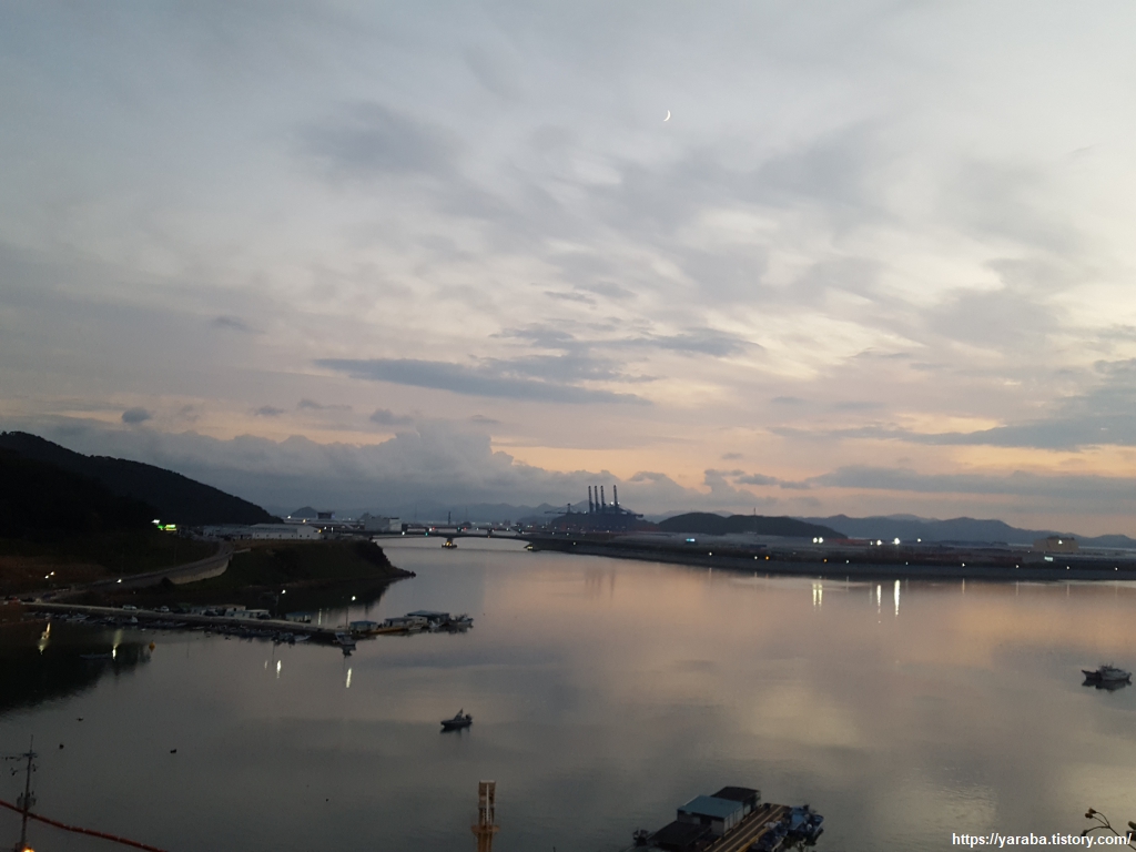 공단의 불빛이 하나둘 켜지고, 인근 아파트의 불빛도 훤하게 밝혀지는 시각 진해구 두동의 숙소에 도착했다.