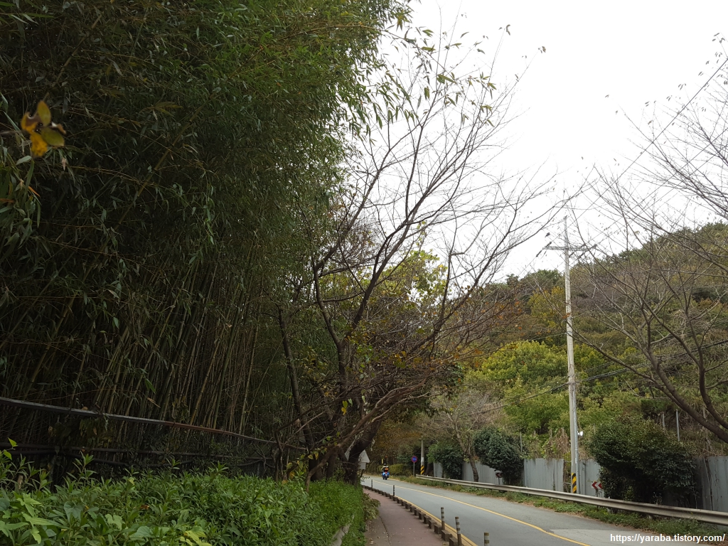 때로는 철제 울타리가 감당하지 못할 정도로 울창한 대나무 숲을 만나기도 한다. 길에서 울창한 울타리 숲에 감탄하기는 드문 일일 것이다.