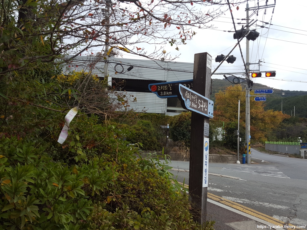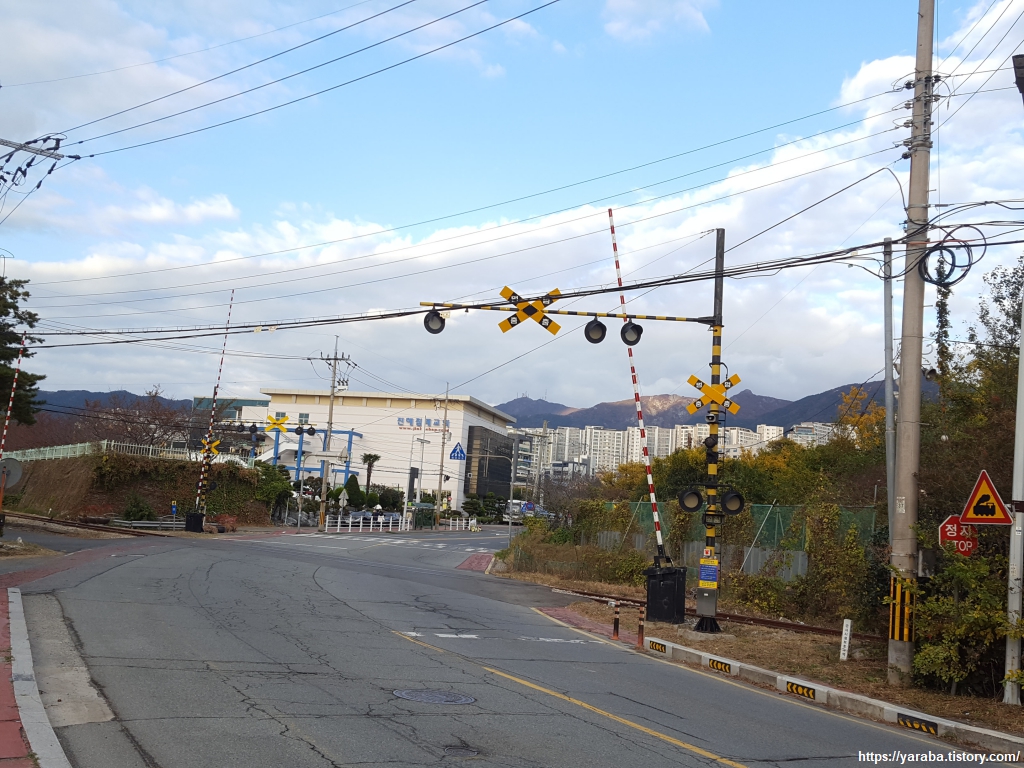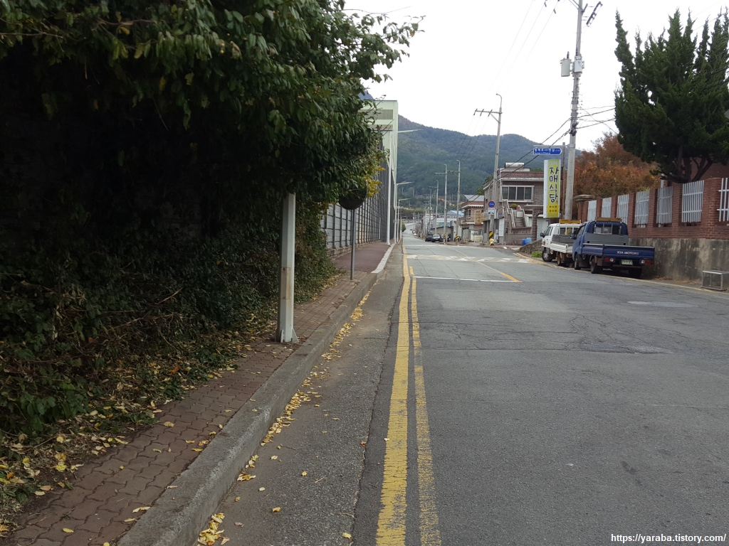 장천동에 진입하면서 철길을 건너 우회전하면 장천동 마을 회관을 지나 장천동 사거리에 도착한다. 원래의 남파랑길은 사거리에서 우회전하여 아파트 단지를 지나 산길로 진입하지만 우리의 이번 여정은 여기서 마무리한다.