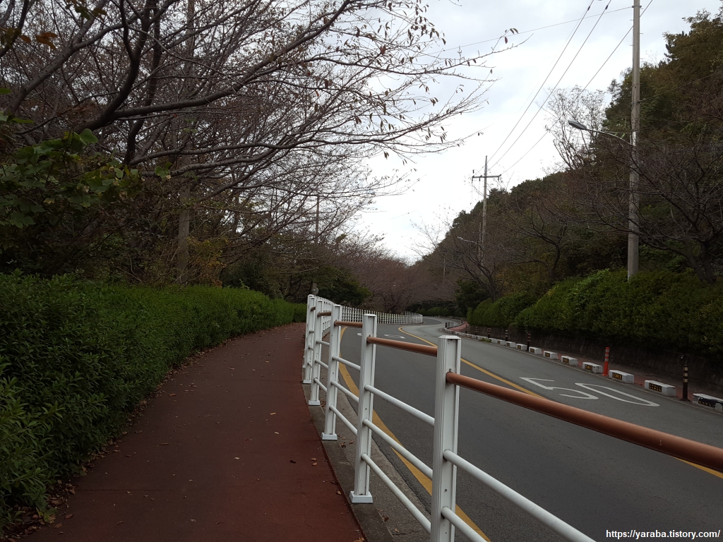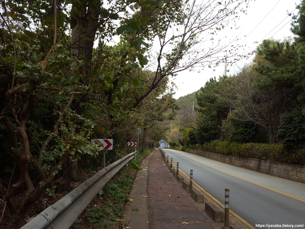 이제 조선소길을 떠나 행암로 도로를 따라서 행암동으로 향한다. 진해 바다 70리 길을 따라가면 도로변을 걷더라도 좋은 보행로가 이어지니 좋다.