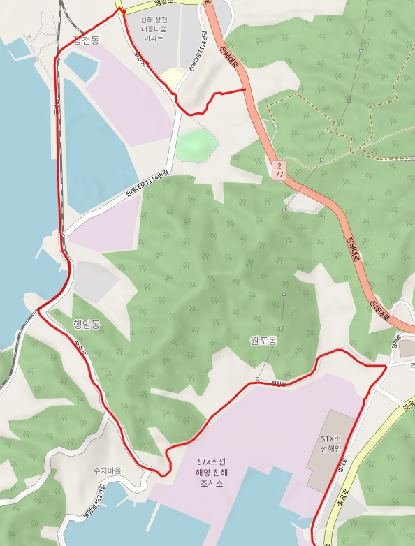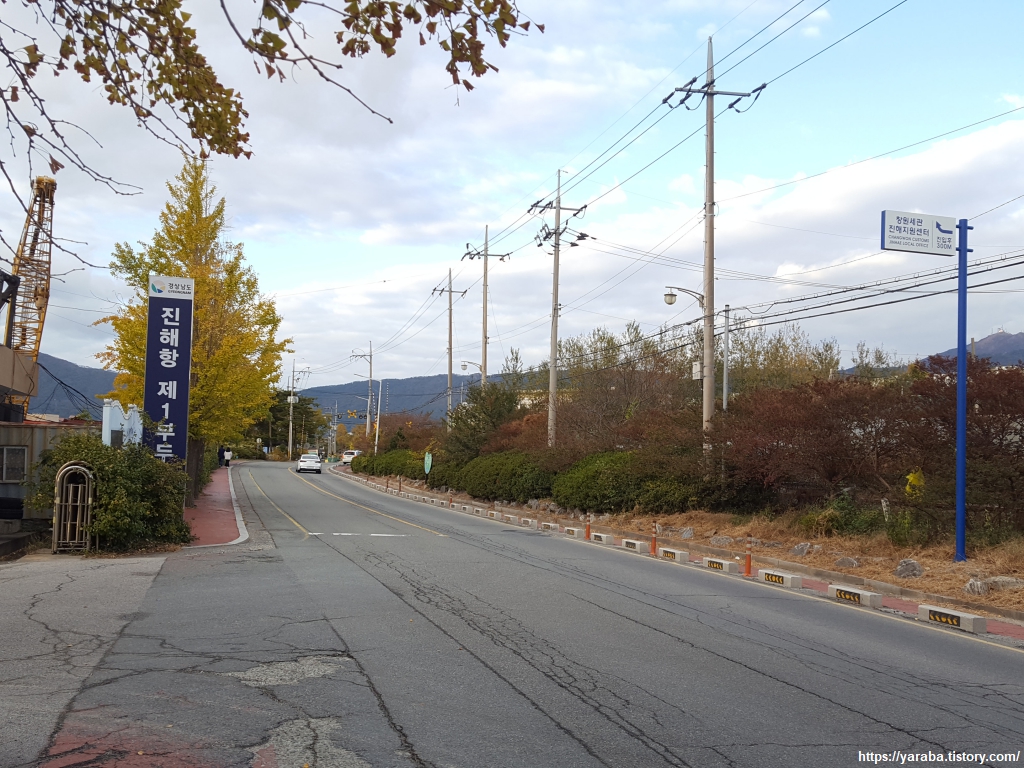 진해항 제1 부두를 지나면 진해구 장천동으로 진입한다.
