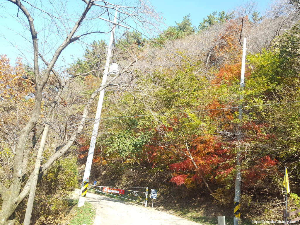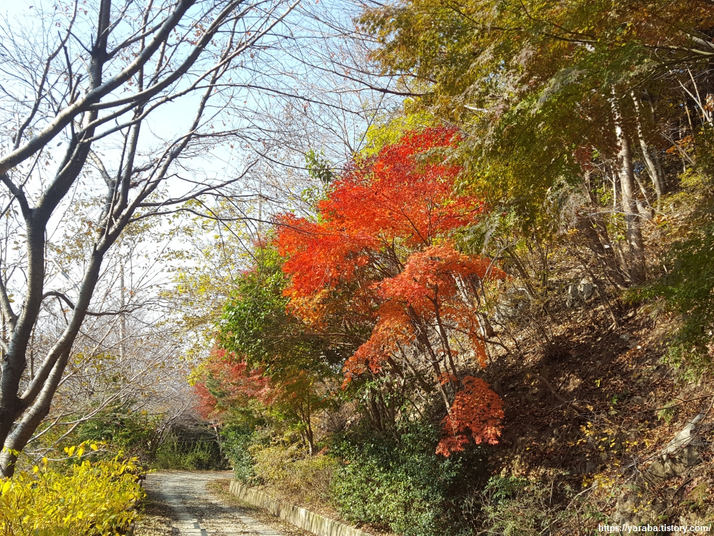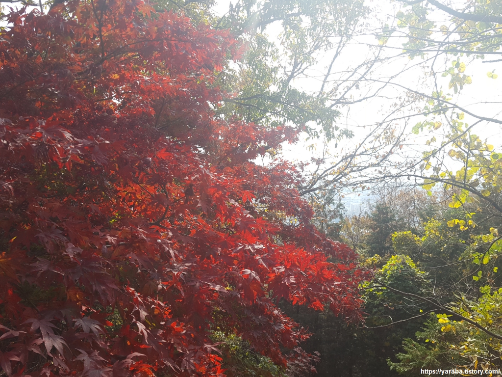 노란 단풍도 색감이 좋고 짙은 빨강의 단풍을 만나면 와! 하며 자연스럽게 발걸음을 멈춘다. 걷기 속도를 느리게 만들지만, 눈이 즐거운 길이다.
