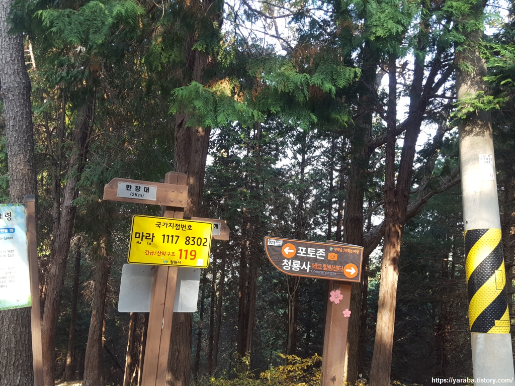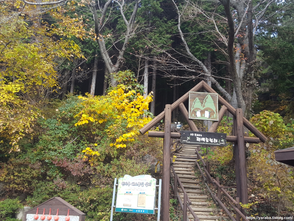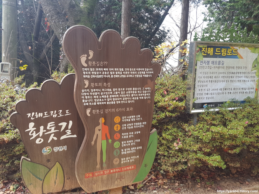 이곳 표지판에서 처음 만난 "욕먹는 여행"이란 문구가 재미있었다. 한자와 친하지 않은 사람이라면 무슨 소리야! 하면서 한소리 할만한 문구다. "편백숲 욕(浴) 먹는 여행"이 전체 문구였다. 목욕할 욕(浴) 자를 사용한 것인데 편백 나무 산림욕 가득 먹는 힐링 여행이란다. 창원시에서 운영하는 생태 관광 프로그램이었다. 중간중간에 있는 에코 힐링 센터는 이 프로그램과 연관된 것이다.