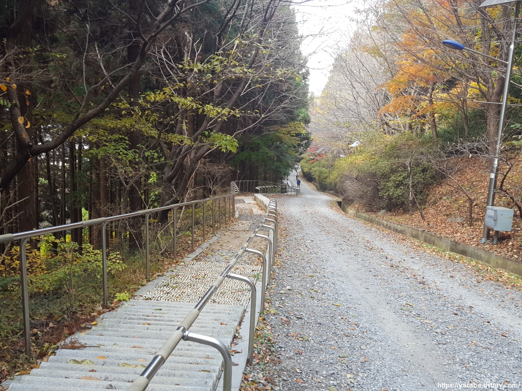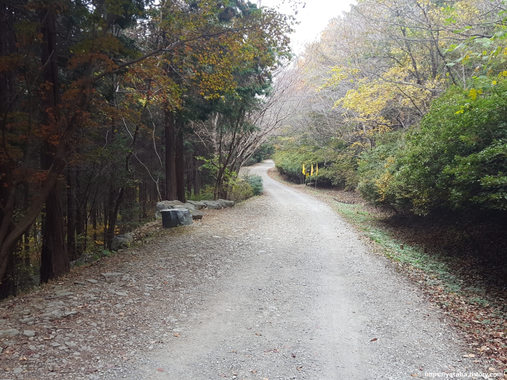 청룡사 에코 힐링 센터를 지나면 자은동에서 청룡사로 올라가는 도로를 가로질러 이어간다.