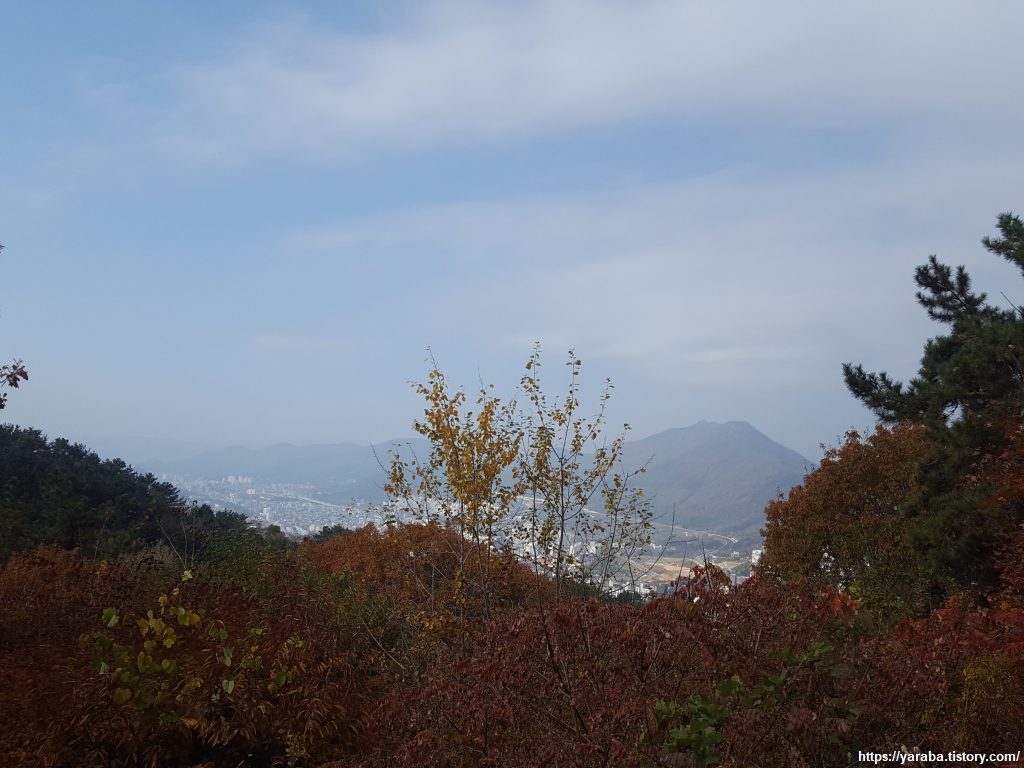 점심을 해결한 다음에는 계속 길을 이어간다. 출발 이후 계속 북쪽으로 이동하던 길은 청룡사 갈림길 부근부터는 서쪽으로 이동한다. 그러다 보니 산에 가려 보이지 않던 장천동 방면의 주거 단지도 이제 눈에 들어오기 시작한다. 이곳에는 무궁화도 심어져 있었다.