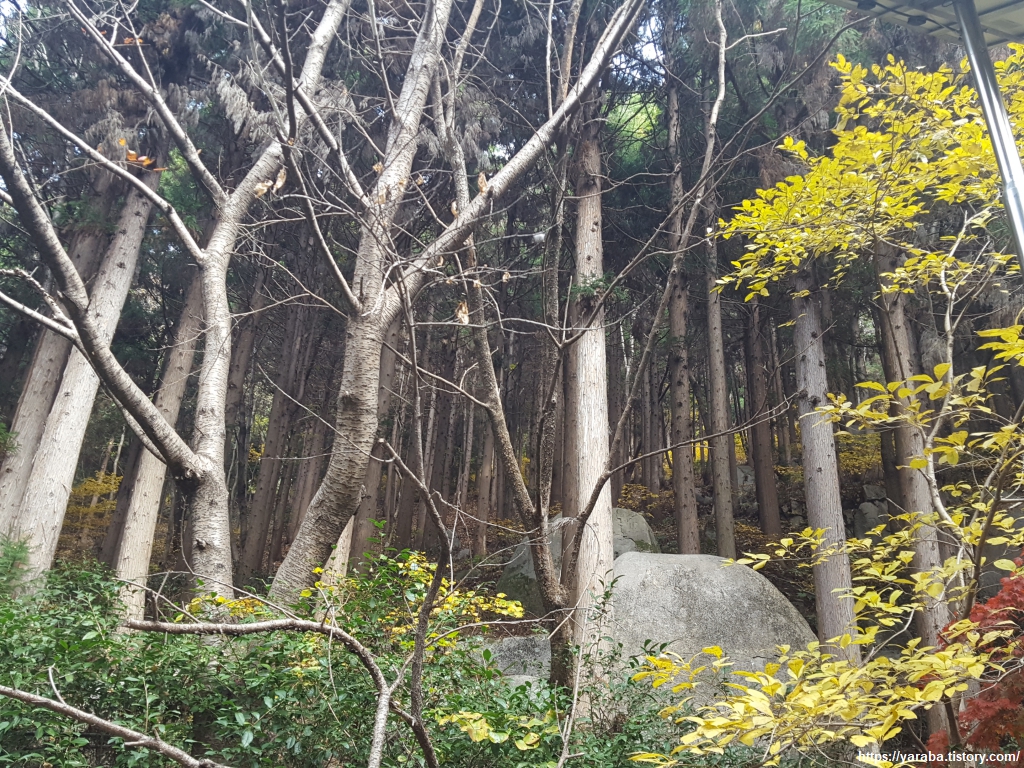 이곳은 은행나무가 아니지만 노란 단풍이 풍성하고 조금 더 가니 푸른 대나무가 눈을 시원케 한다.