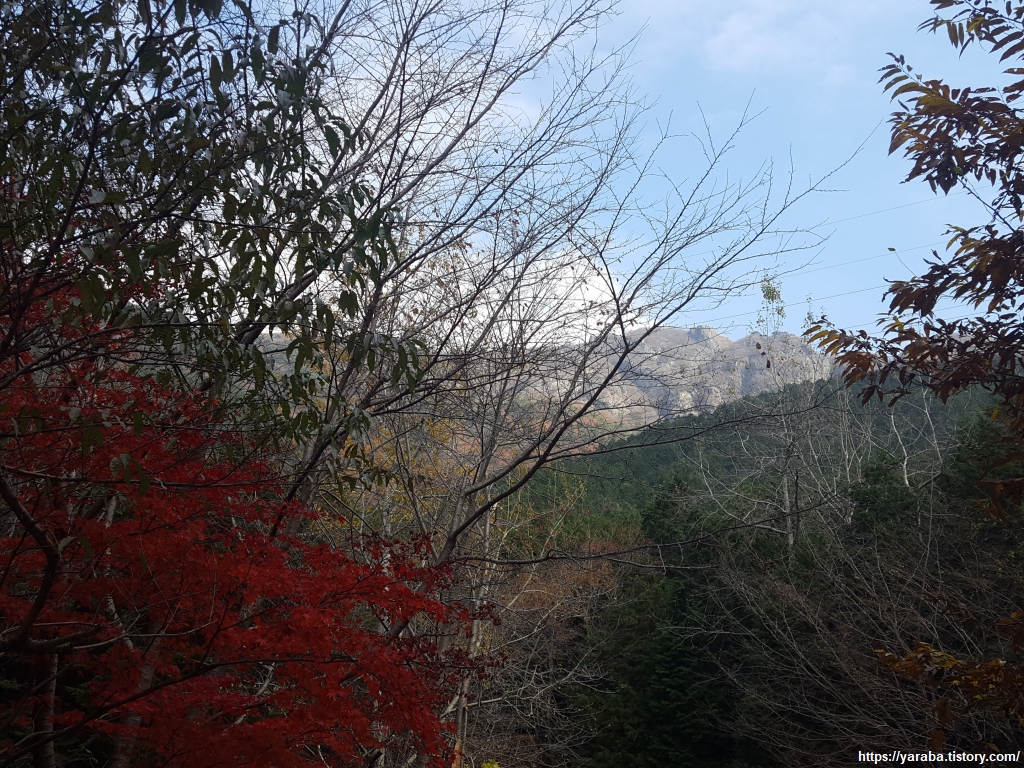 쾌청한 하늘과 붉은 단풍은 아름다운 단풍 감상의 필요충분조건일까? 붉은 단풍을 보느라 걷기 속도가 나지 않는다.