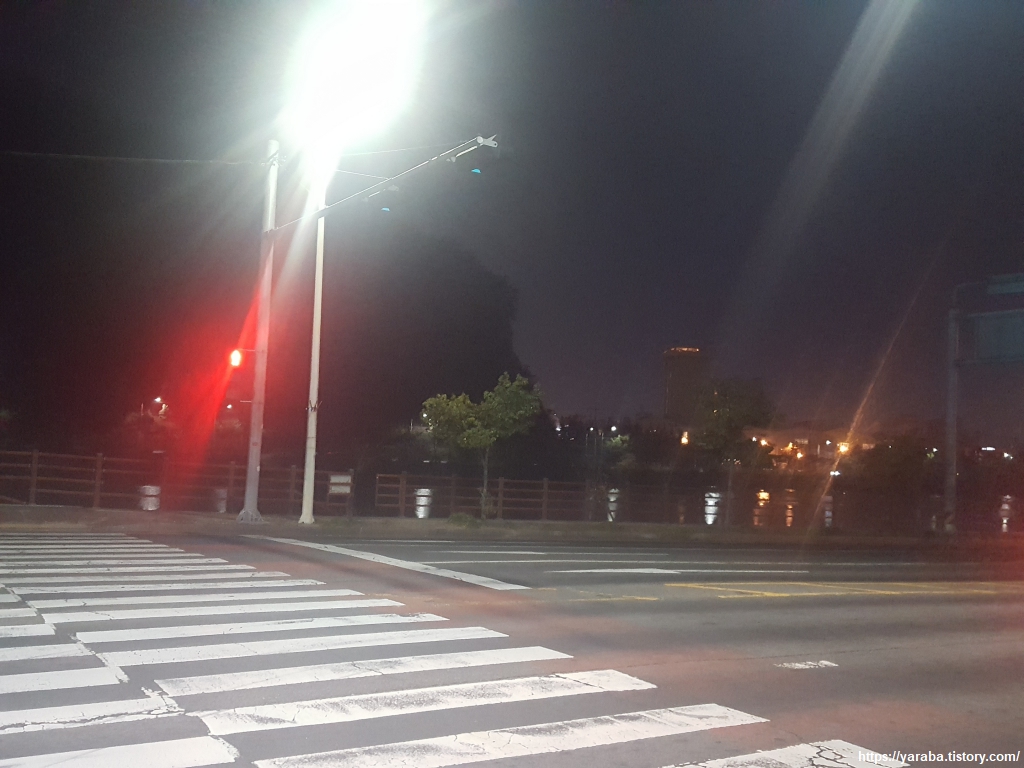 봉암교 IC 외곽으로는 인도교가 마련되어 있어서 도보로 봉암교 아래 둔치로 이동할 수 있었다. 인도교 위에서 바라본 창원의 밤 풍경이다. 야간작업을 하는 근로자도 있겠지만, 많은 분들이 가정으로 돌아갔을 고요한 시간이다.