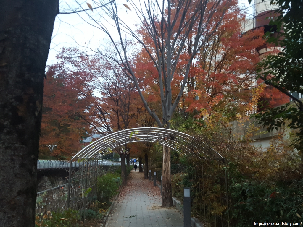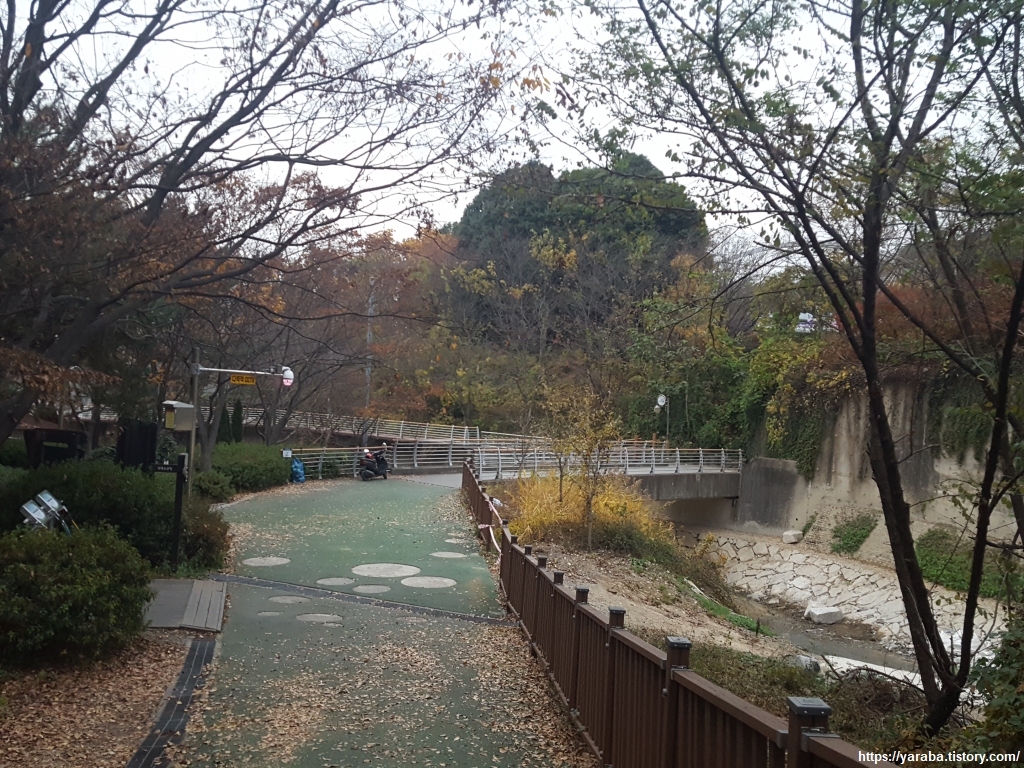 강변 산책로를 통해서 다리 아래를 지나 좌측으로 돌아 올라가면 적현로의 보행로를 만날 수 있다.