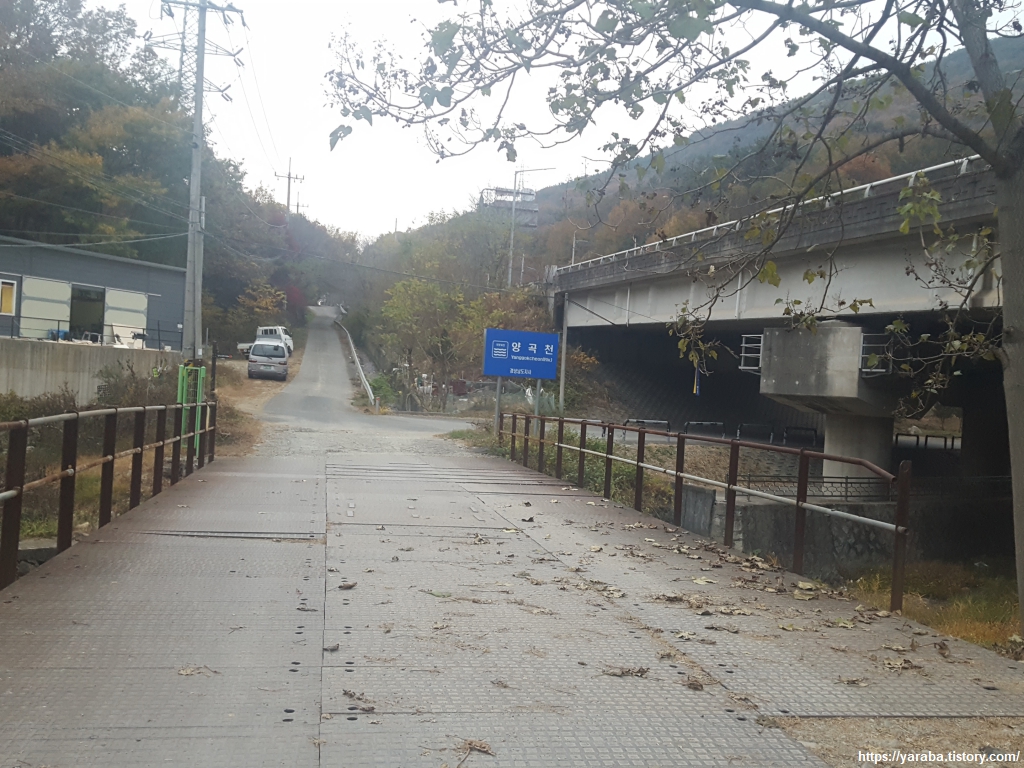 길은 국도에서 좌회전하여 양곡천으로 내려간다.