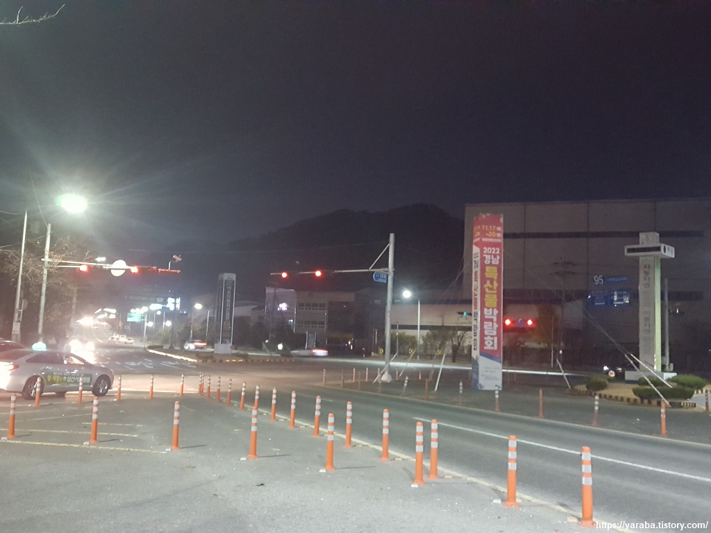 지금은 통합되었지만 한때는 마창진이라 불렸던 곳의 중심지들로 향하는 표지판이 이곳의 위치를 말해 주는 듯하다. 진해구청, 마산 회원구청, 창원 시청이다.