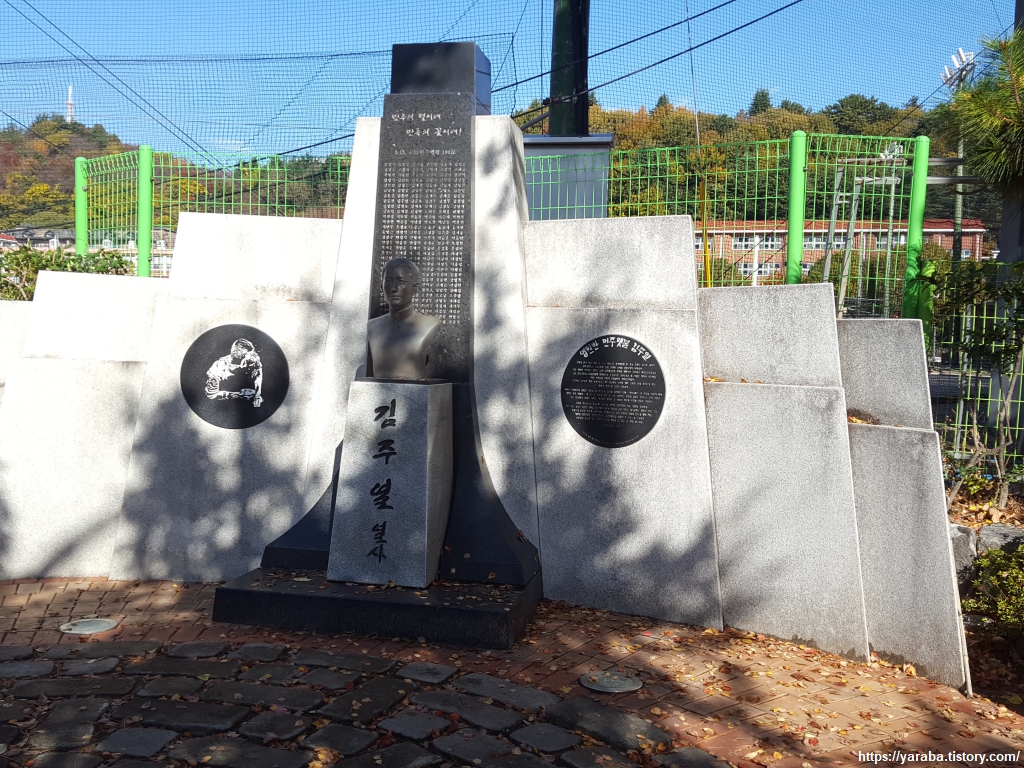 용마고 앞에서는 우리 현대사에 큰 획을 그은 4·19 의거의 도화선이 된 김주열 열사의 흉상이 세워져 있었다. 그의 이야기는 SBS 꼬리에 꼬리를 무는 이야기에서 다루기도 했었다. 방송에서는 김주열 열사의 얼굴을 관통한 최루탄을 공개하기도 했다. 17세 소년의 죽음에 초점을 맞춘 방송이지만 개인적으로는 3.15 부정 선거와 그것을 감춘이들이 제대로 단죄받지 않고 그 영향력에 있던 이들이 여전히 세력을 가지고 현재를 살고 있다는 점이 안타까울 뿐이다. 아무튼 4.19 혁명과 부마항쟁까지 마산이 민주화의 성지라는 점을 새롭게 마음에 새기게 된다.