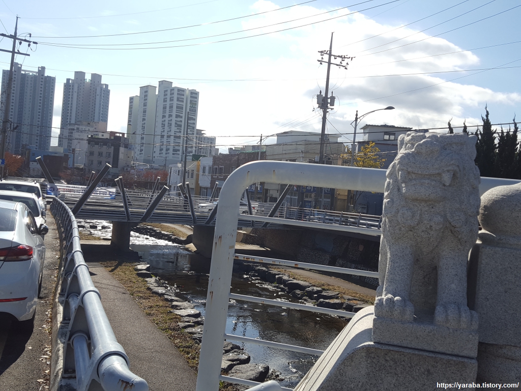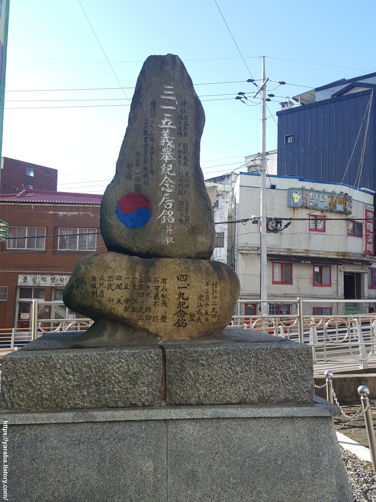 교방천 한 귀퉁이에는 오랜 세월의 흔적이 남은 3.15 의거, 4.19 기념탑이 있었다.