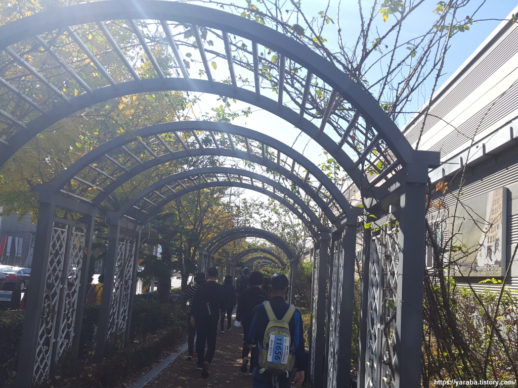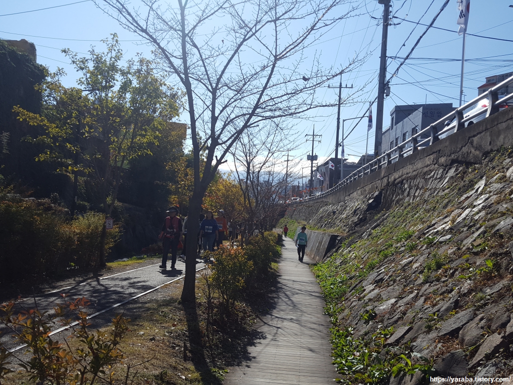 마산역에서 부두로 이어지던 임항선 철도를 완전히 걷어내지 않고 산책로로 조성한 곳이다. 그런데, 사람이 너무 많다. 때마침 제10회 임항선 그린웨이 라디엔티어링이란 걷기 행사가 진행되고 있었다. 2,500명이 한 번에 걸으니 많을 수밖에 없었다.