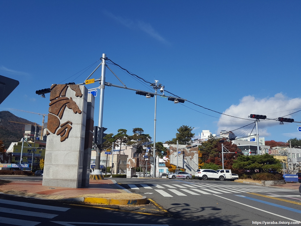 상남 로터리라고도 부르는 육호 광장 교차로에 도착했다. 상남 로터리라는 이름처럼 이곳은 원형 교차로가 있던 자리이다. 원형 교차로로 진입하는 길이 여섯 개라고 육호 광장이라 불렀다는 말이 있다. 원형 교차로가 없어지고 평면 교차로로 변경하면서 교차로에 말 조형물을 세워 놓았는데 왜일까? 질문을 하자마자, 마산이 말 마(馬)를 사용하고 있음에 스스로 실소가 터트린다. 길은 직선 방면의 북성로 사거리 방면으로 이동한다.