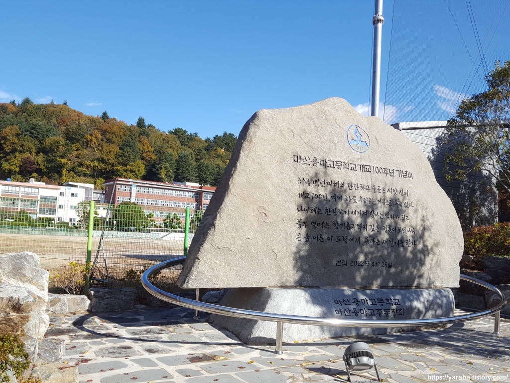 김주열 열사가 다녔던 용마고는 2022년 개교 100주년을 맞았다. 학교로 들어가는 길 양쪽에 우뚝 솟은 나무의 단풍이 제대로 들었다. 교정의 나무가 학교의 역사를 제대로 표현하고 있는 듯하다.