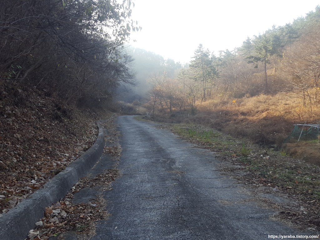 구불구불 이어지는 오르막 임도는 옷을 하나둘 벗겨내고 머리에는 땀이 흠뻑 고이게 한다. 안정리 마을 풍경과 가스 공사 LNG 탱크들의 모습도 점점 더 멀어진다.