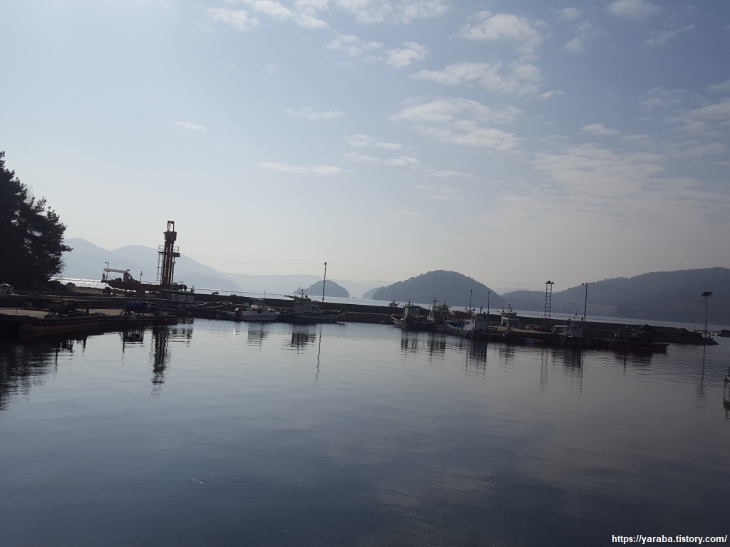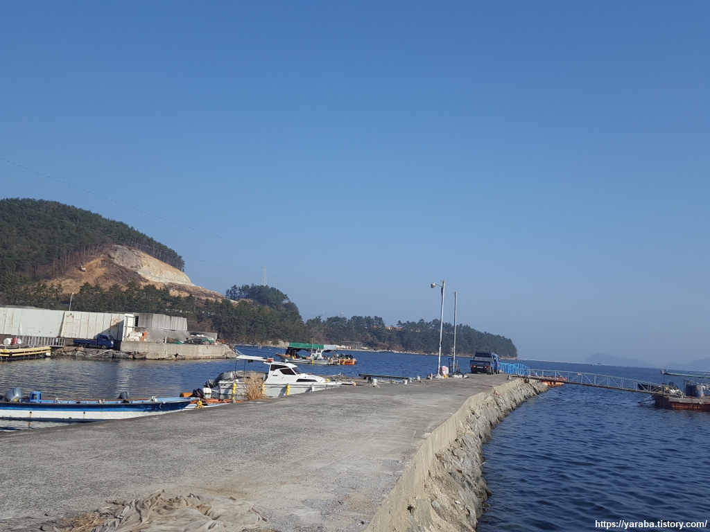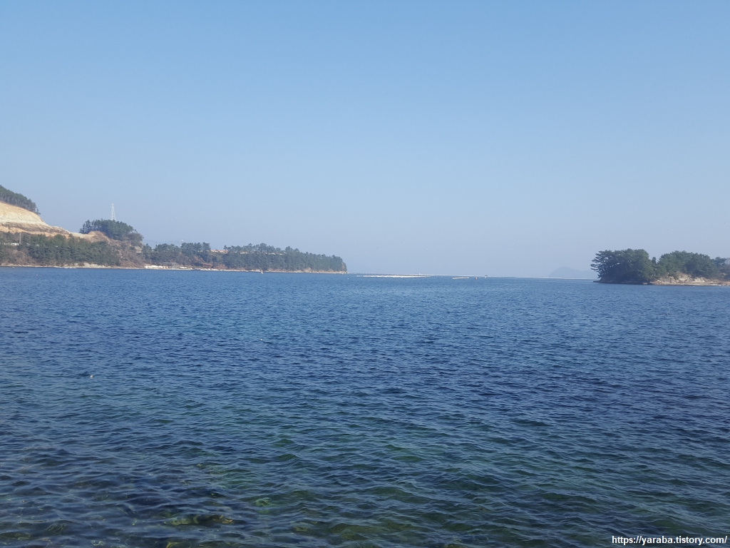 헉헉거리며 숲 속을 걷다가 잔잔한 덕포리 앞바다를 만나니 마음 또한 평온해진다. 덕포리 앞바다의 입도는 갓섬이라고도 불리고 10여 명의 주민들이 거주하고 있다고 한다.