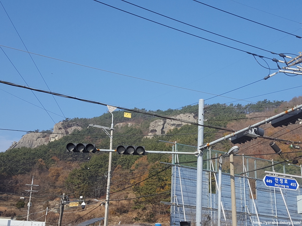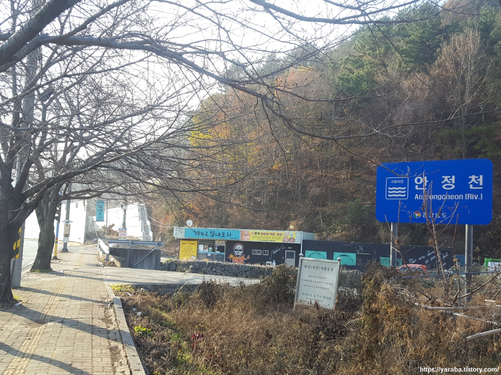 77번 국도 안정로 도로를 따라 길을 이어간다.