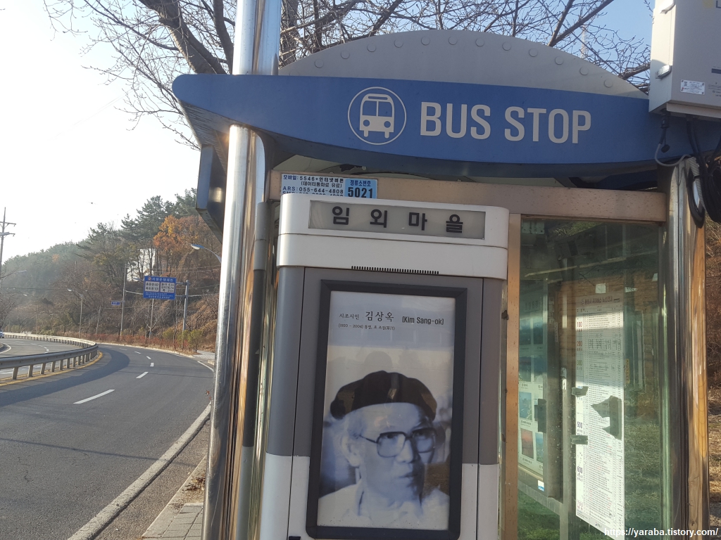 황리 사거리에 있는 임외 마을 정류장에서 14코스를 시작한다. 통영 시내버스 정류장에는 측면에 지역 출신의 문학가를 소개하고 있는 것이 특색인데, 이 정류장에서는 시조 시인 초정 김상옥 선생을 걸어 놓았다. 1974년 제1회 노산 시조 문학상을 수상했다.