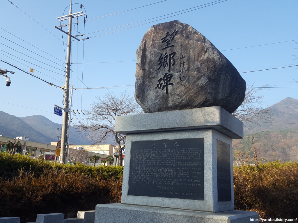 중촌, 임외, 임내, 임중 마을의 이주민들이 세운 망향탑에서 이곳 사람들의 애환을 되짚어 본다. 거대한 산업 단지와 LNG 기지가 건설되면서 오랜 세월 살아왔던 삶의 터전을 떠나야 했던 이곳 사람들의 이야기가 담겨 있다. 길은 벽방 초등학교 앞을 지나 계속 이어진다.