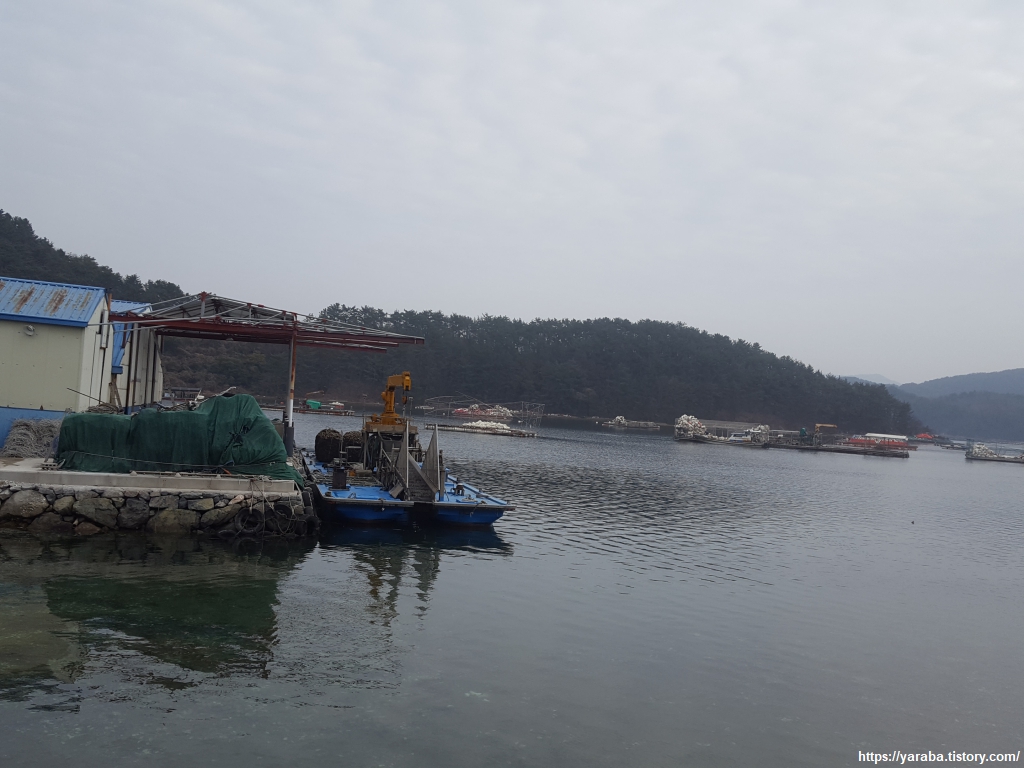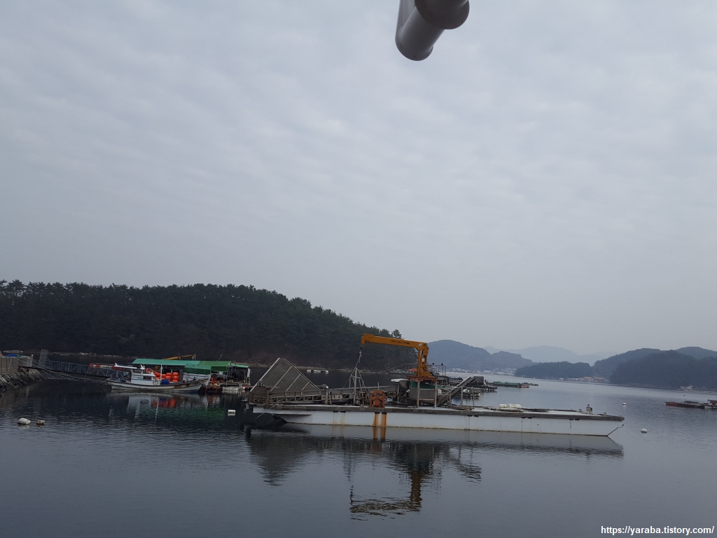 굴을 대량으로 양식하다 보니 독특한 모양의 배도 있고 배에 실린 독특한 장비들도 눈에 들어온다.