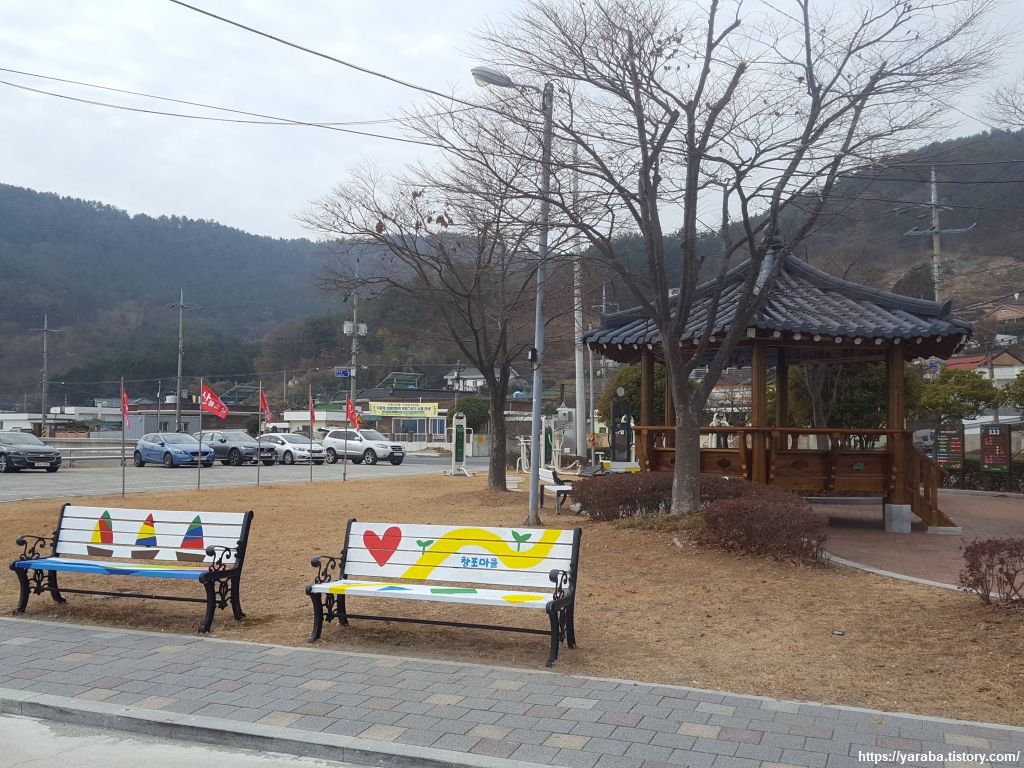 최근에 색칠했는지 벤치가 아기자기하고 깔끔하다. 예쁘고 방문하고 싶은 마을은 결국 마을 사람들도 스스로 아끼고 가꾸어야 가능하다는 생각을 해본다.