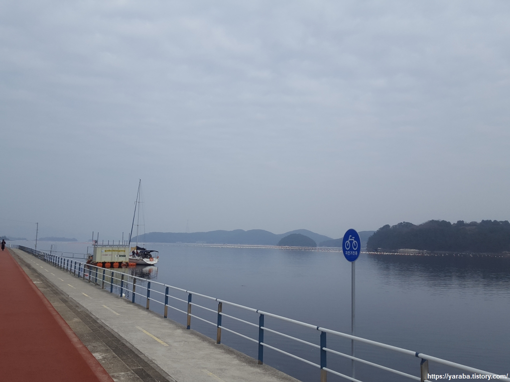 남파랑길 14 코스는 통영시 광도면 죽림리에서 용남면 장문리로 넘어가면서 충문 도서관 앞에서 끝난다. 죽림 지구 매립을 처음 구상했던 사람의 생각대로 시행되었다면 아마도 이 근방은 모두 육지였을텐데 하는 생각이 든다. 지금의 죽림리 모습은 매립 계획의 50%로 축소해서 시행한 것이란다. 남해안은 끊임없이 매립의 유혹이 이어질 수밖에 없겠구나 하는 생각이 드는 것도 사실이다.
