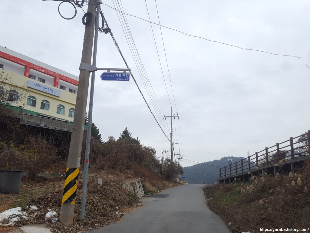 기호 마을 언덕 위에는 엉뚱한 미술 체험 학교라는 이름의 특이한 학교도 있었다. 체험식으로 아이들에게 미술을 가리키는 곳이라고 한다. 길은 장문로 도로를 따라서 이어진다.