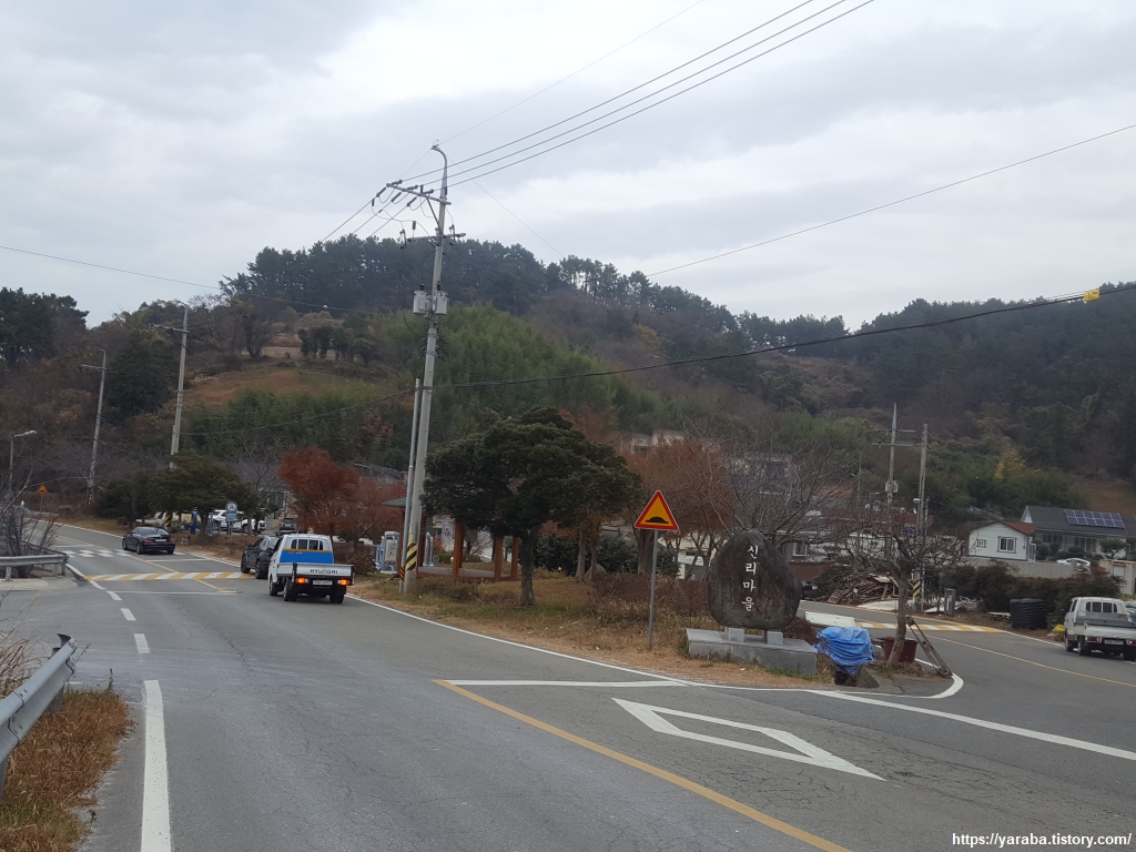길은 신리 마을을 지난다.