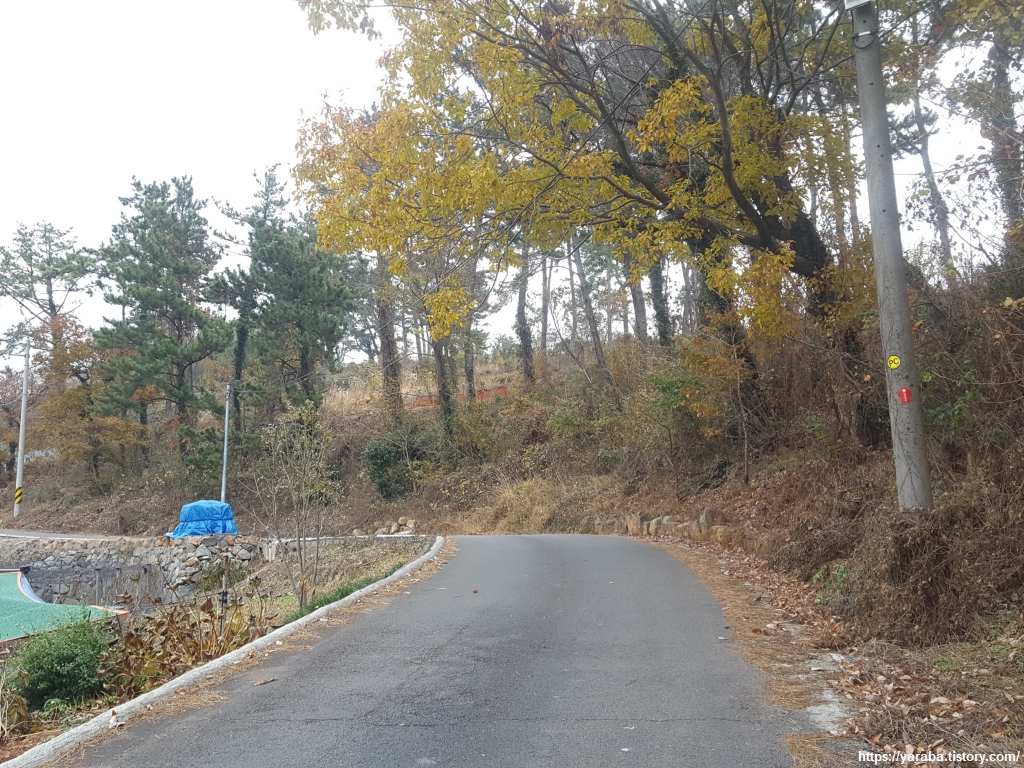 양촌 마을 앞에서 우회전하여 논싯골길을 오르기 시작한다.
