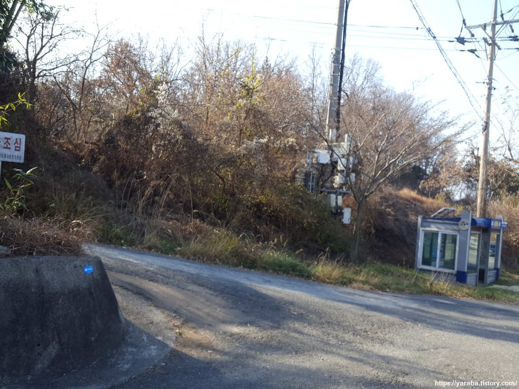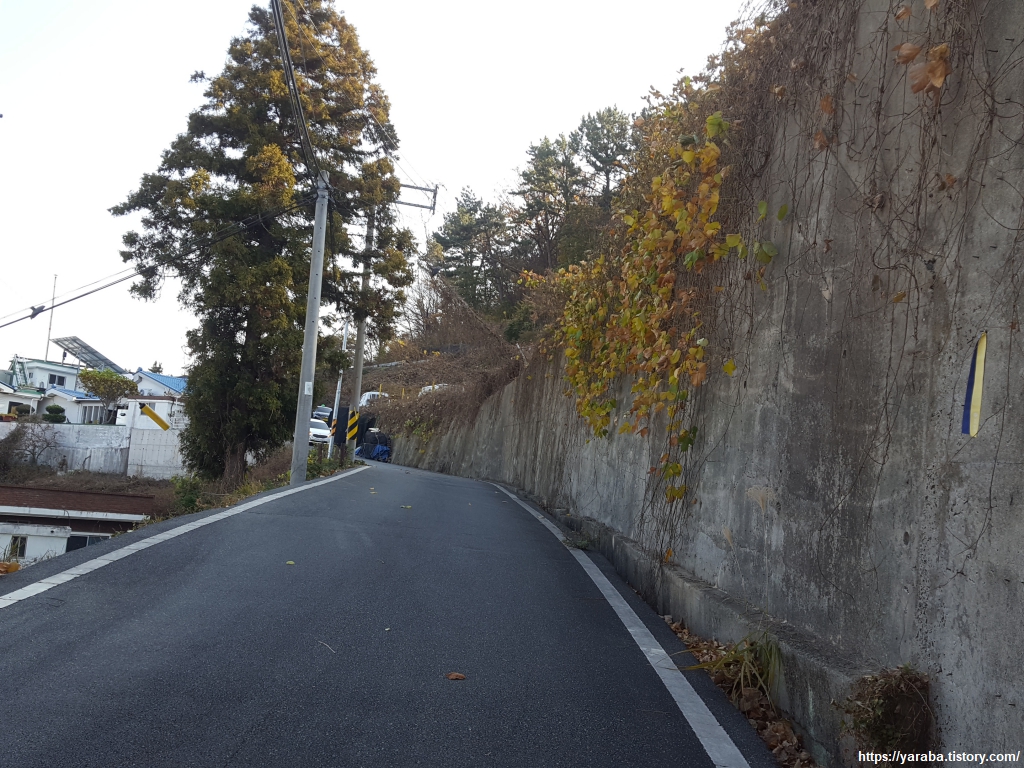 성포중학교 정류장 앞에서 좌회전하여 망치산 등산로를 오르기 시작한다. 조금은 가파른 오르막이다.