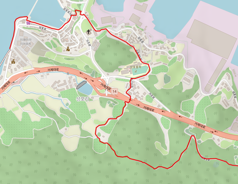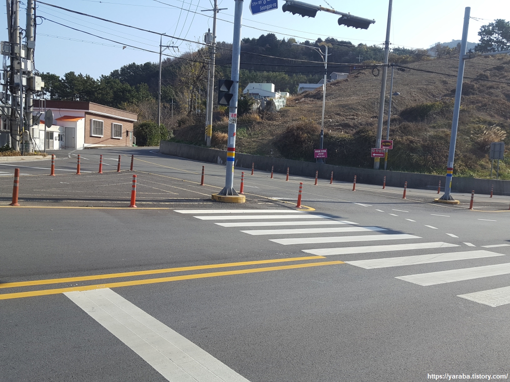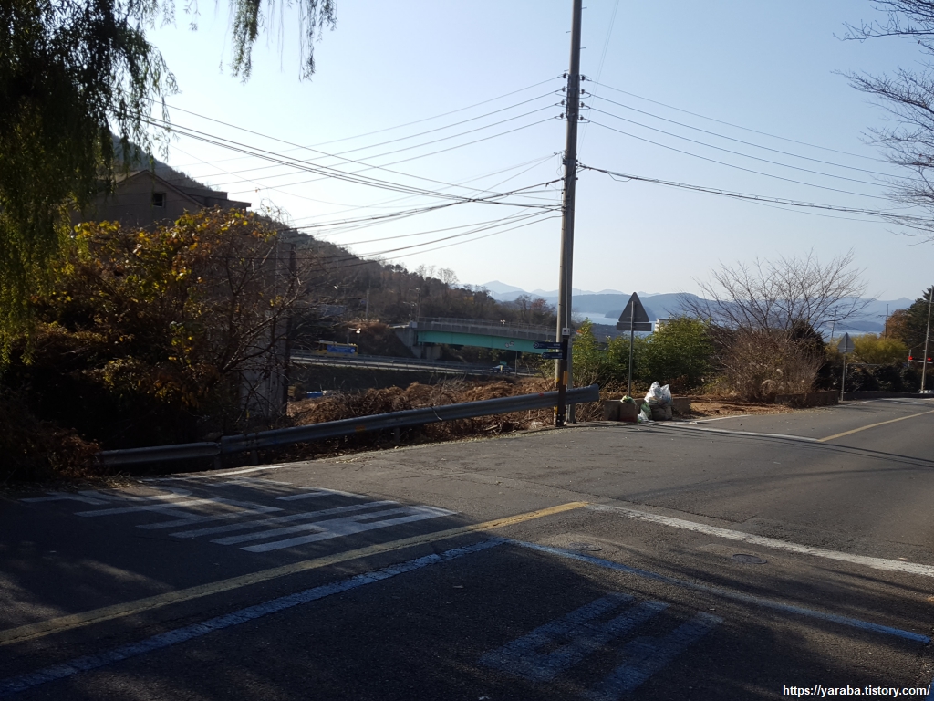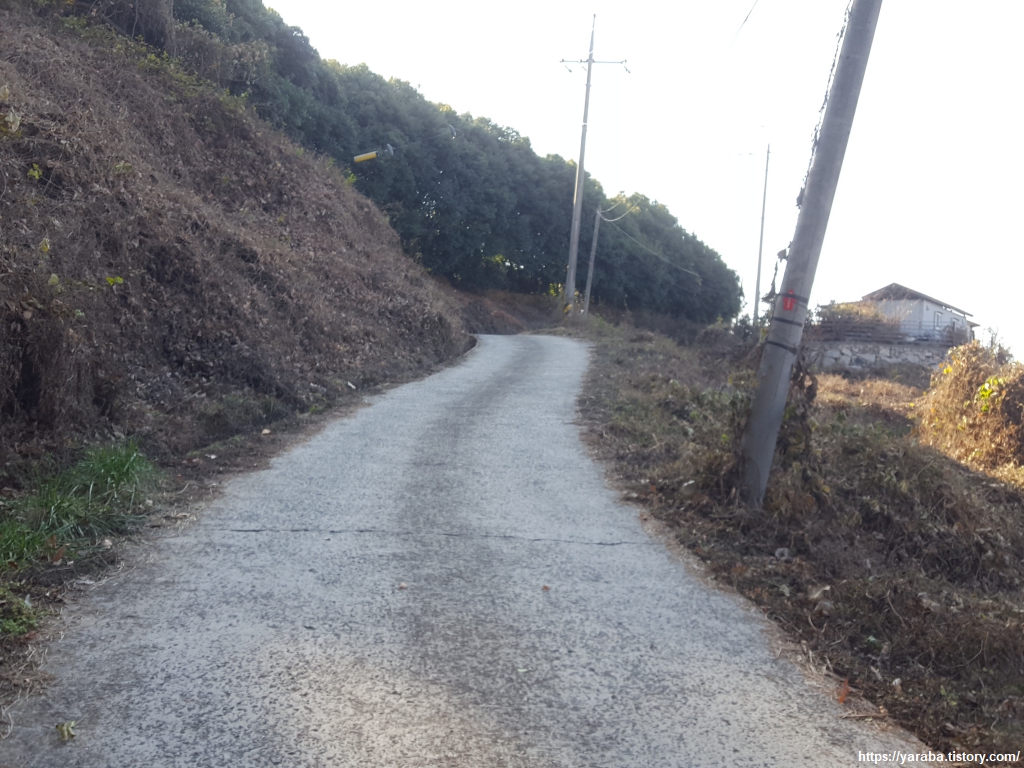 언덕 위에 오르면 가조 연륙교로 이어지는 가조로 도로를 가로질러 성포리 마을길을 이어서 걷는다.