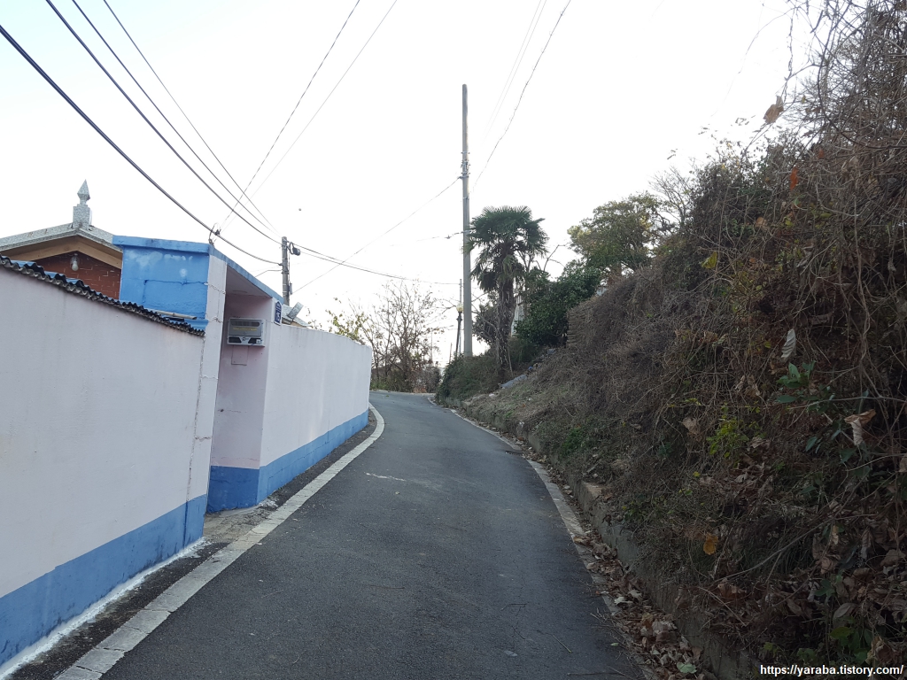 남파랑길은 성포 위판장 뒤의 골목길을 오르는 것으로 길을 이어간다.