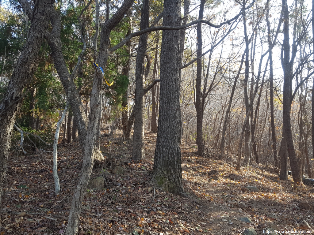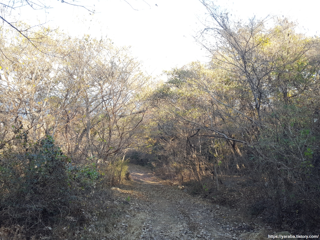 길은 포장도로를 벗어나 망치산 등산로를 따라서 걷기 시작한다.