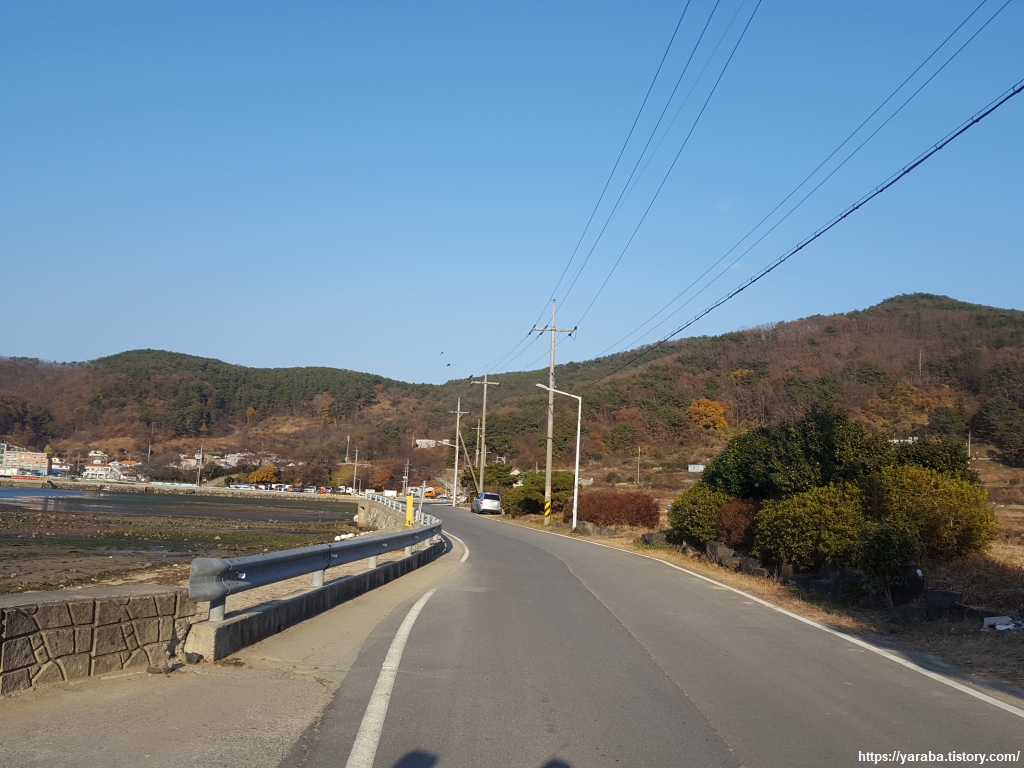 아주 작은 사등천을 지나면 사곡리로 넘어간다. 사곡리라는 이름은 앞바다의 수심이 얕아 모래가 많아서 모래실이라 불렸는데 이것을 한자로 쓴 것이라고 한다. 멀리 사곡리 해수욕장도 보이기 시작한다.